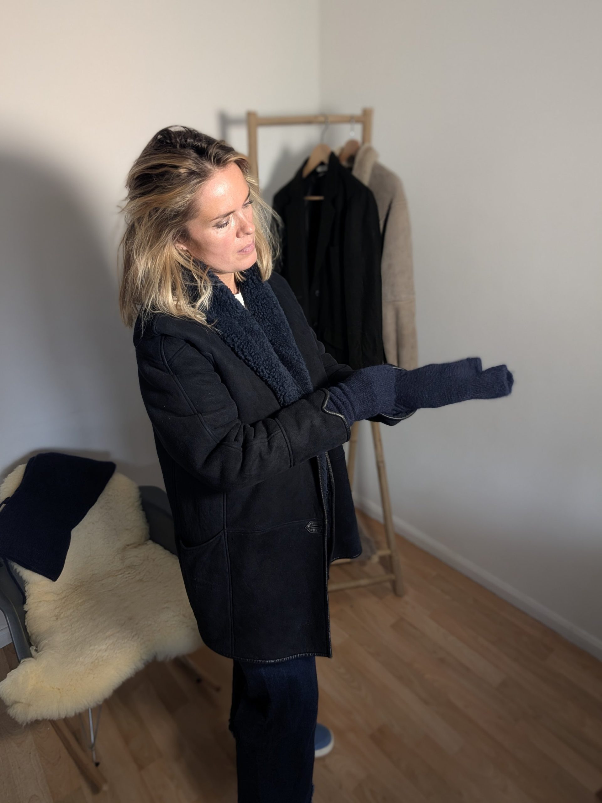 Ce manteau en mouton retourné apporte immédiatement du caractère à une tenue. Sa coupe croisée structure la silhouette et crée un tombé élégant, sans effort. C’est le genre de pièce que l’on garde longtemps, loin des tendances éphémères.
